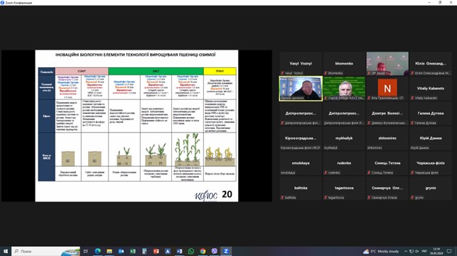 Під час проведення круглого столу обговорено проблеми із захисту зернових культур від шкідливих організмів у весняний період. Надано прогноз фітосанітарного стану агроценозів озимих і ярих зернових культур на поточний рік та рекомендації аграріям щодо своєчасного проведення захисних заходів.