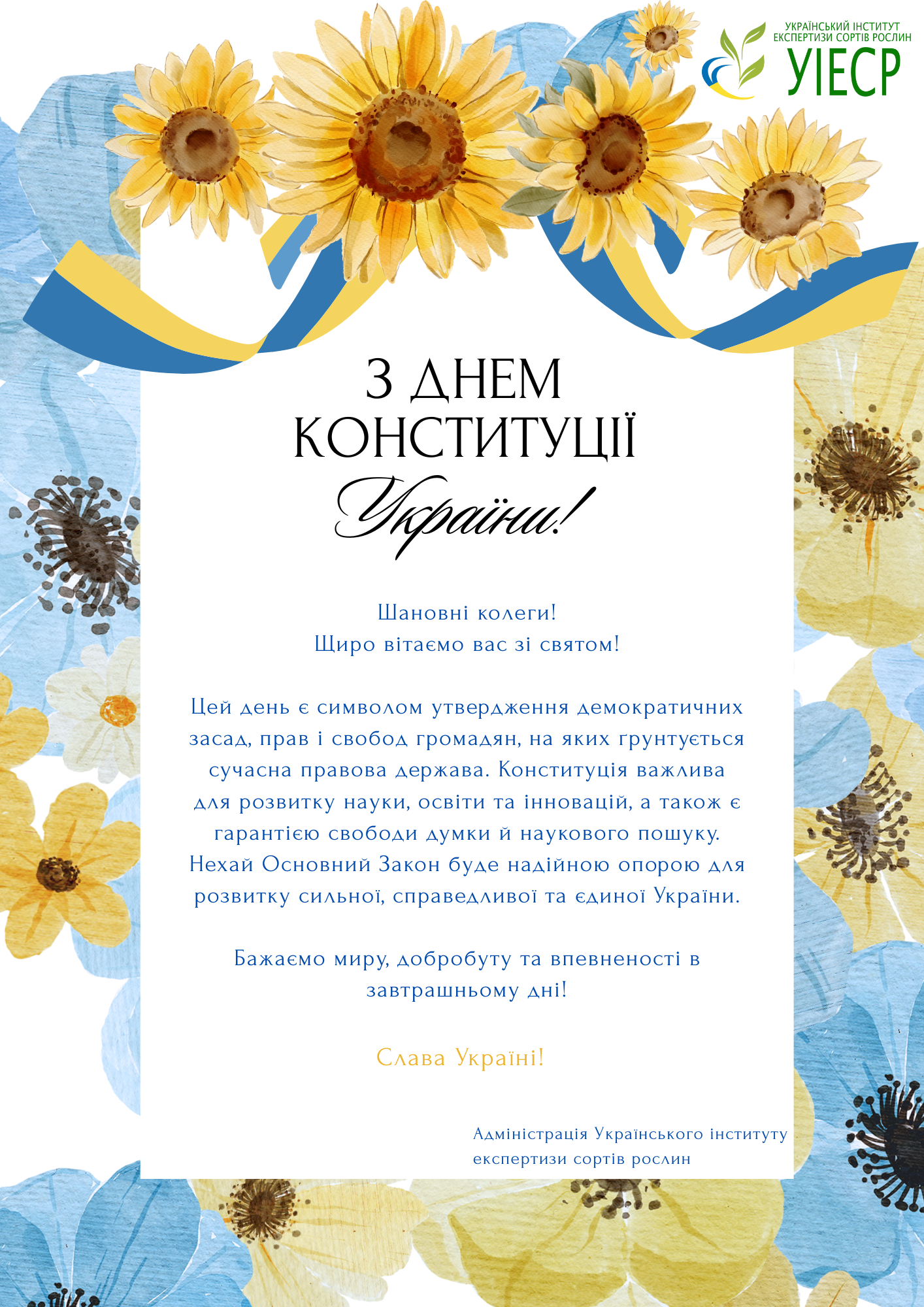 Привітання з Днем Конституції України.