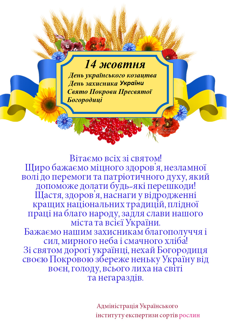 Привітання з Днем українського козацтва, Днем захисника України і Святом Покрови Пресвятої Богородиці